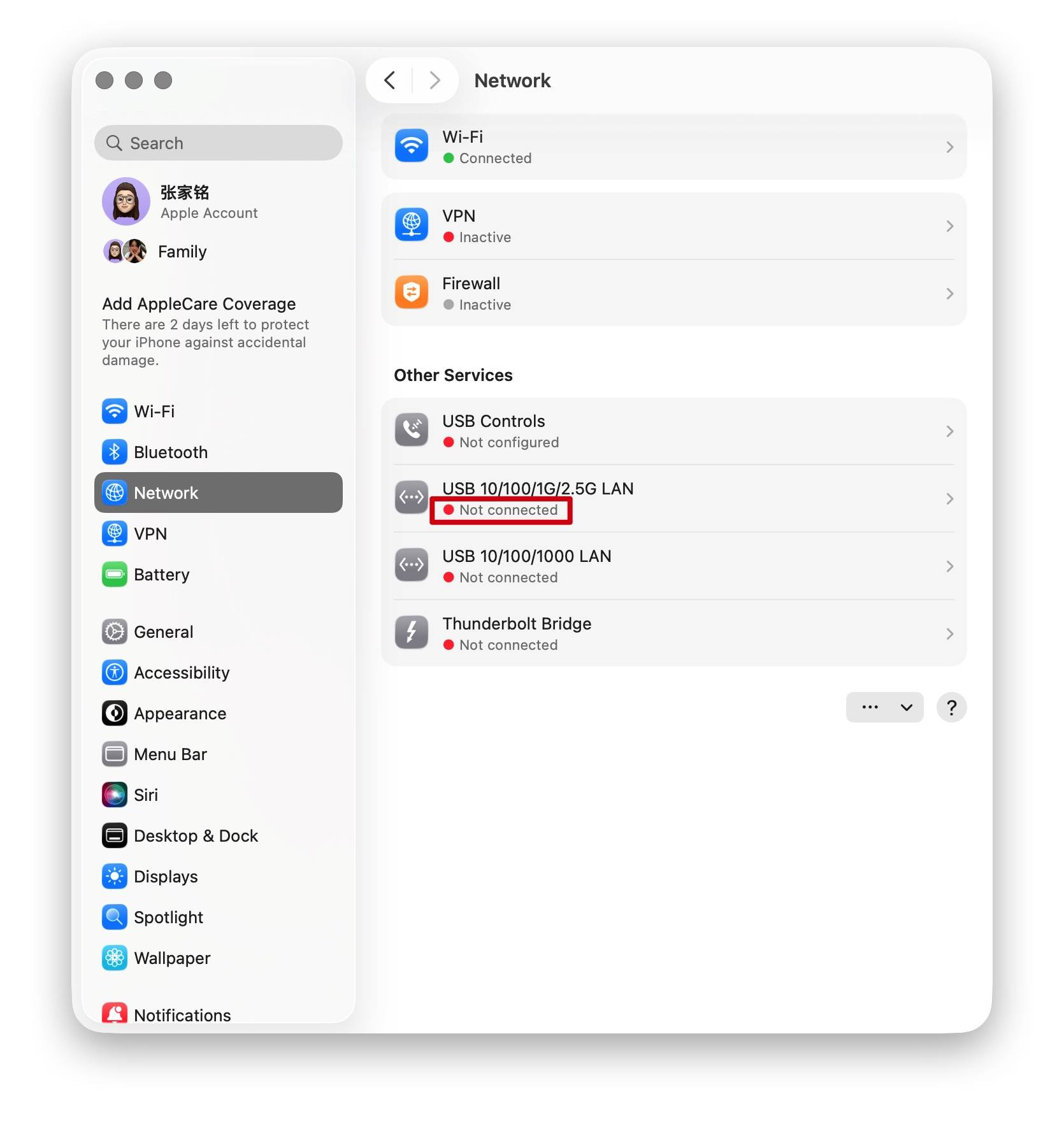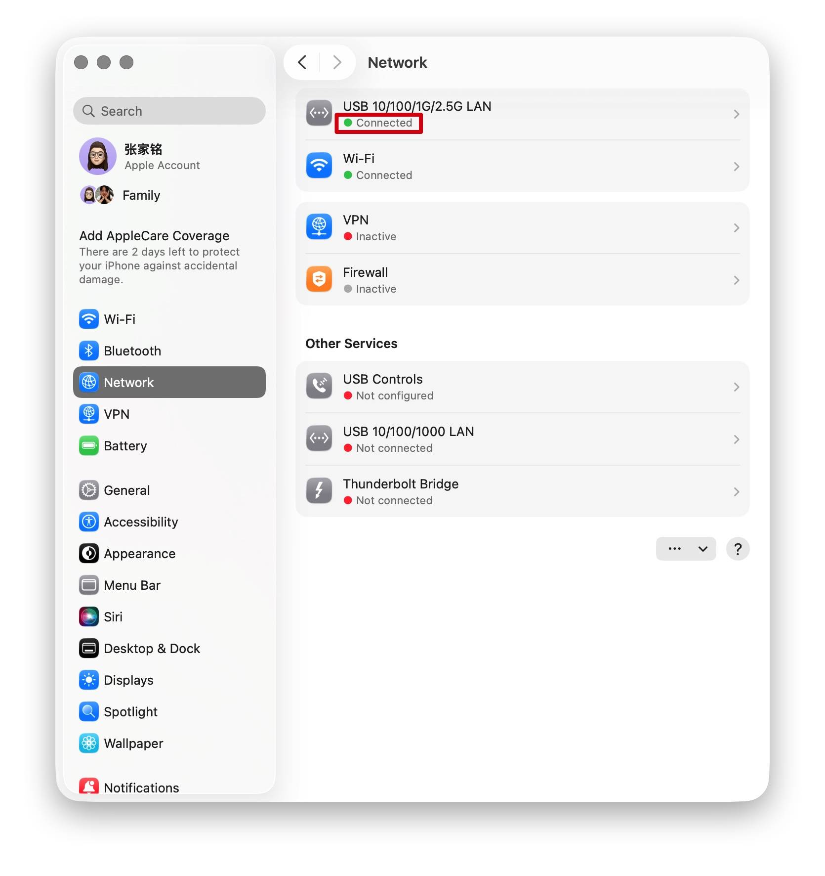 Schritt 3: Gehen Sie zum Apple-Menü (obere linke Ecke) > Systemeinstellungen> klicken Sie auf Netzwerk. Überprüfen Sie die USB 10/100/1000 LAN- und USB 10/100/1G/2.5G LAN-Verbindungen auf wiederholte Verbindungsabbrüche.