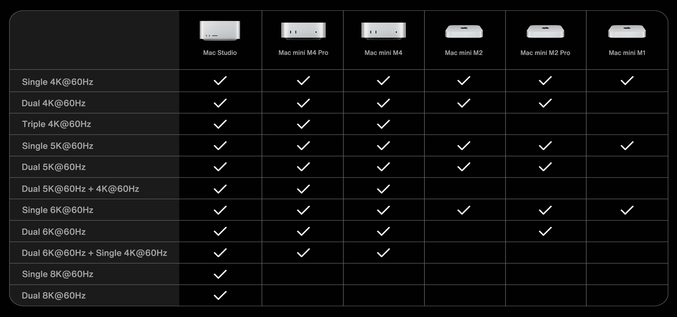 1.エントリーレベルのApple Silicon Mac(M1/M2/M3)の中には、ネイティブで1台の外部ディスプレイしかサポートしていないものもあります。